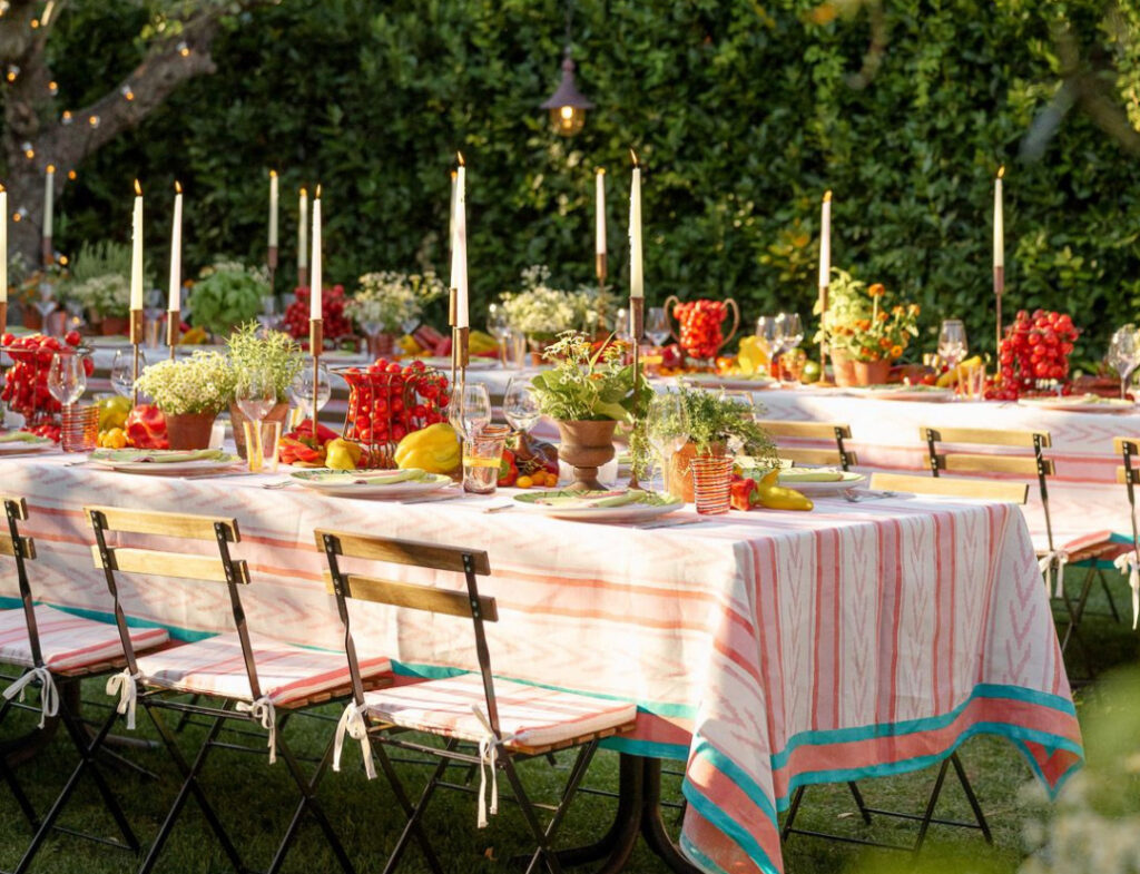Les guirlandes lumineuses, les photophores en verre soufflé et les chandeliers en laiton apportent une atmosphère chaleureuse et romantique. En 2025, la lumière joue un rôle clé pour créer une scénographie douce et intimiste.
