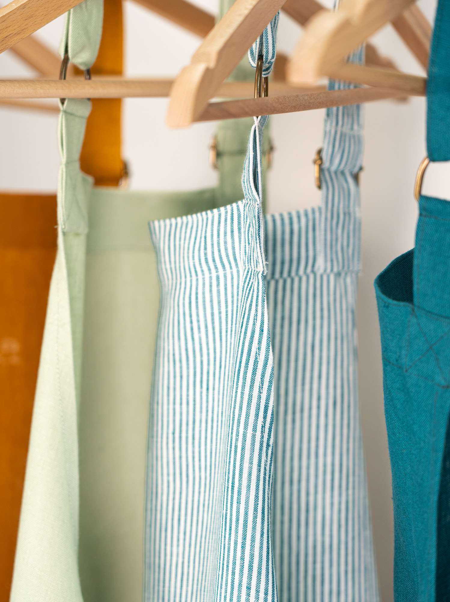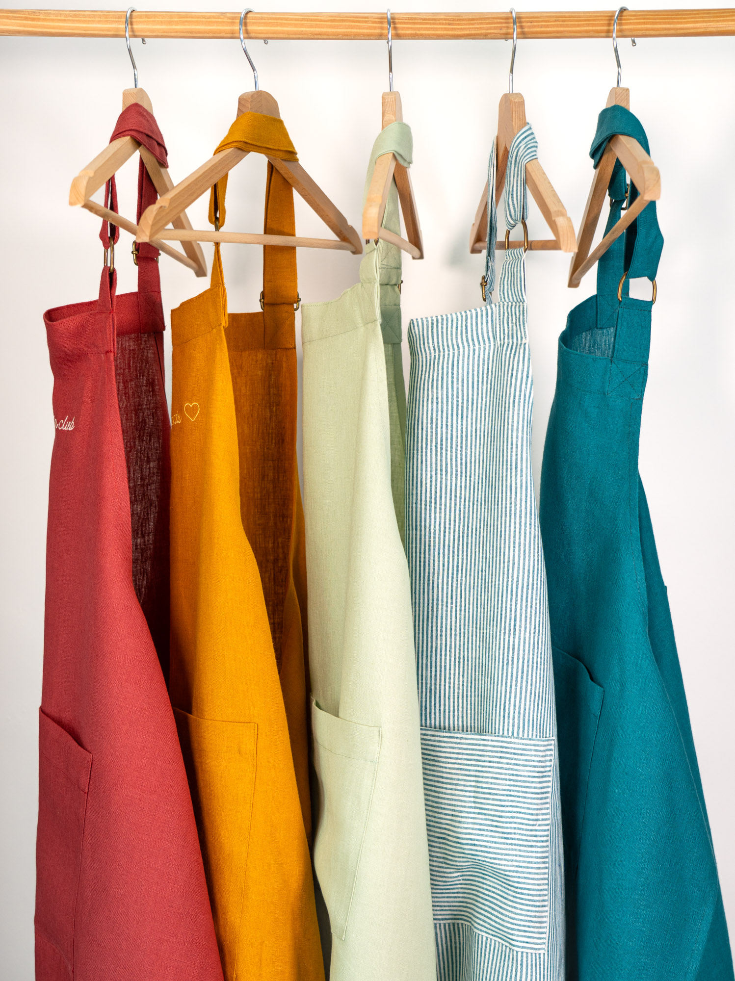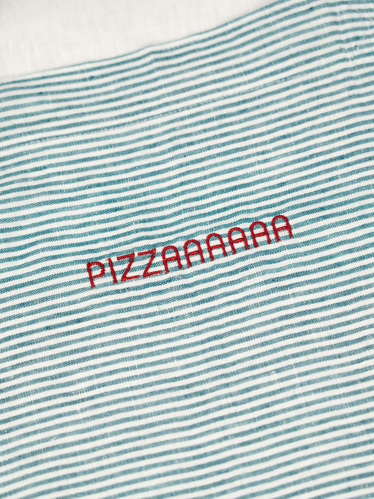 Grembiule personalizzabile in lino a righe verdi. Ricamo rosso scuro. Modello classico, con cinturino regolabile intorno al collo e due grandi tasche davanti. Modello unisex. Un regalo perfetto per il vostro chef preferito! Certificato STANDARD 100 by OEKO-TEX. Realizzato in Francia nel nostro atelier.