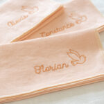 Pour faire broder vos serviettes de table, rendez-vous sur notre boutique en ligne. Pour cette occasion, nous avons réalisé des serviettes en lin lavé Blanc, brodées en rouge et en lilas.