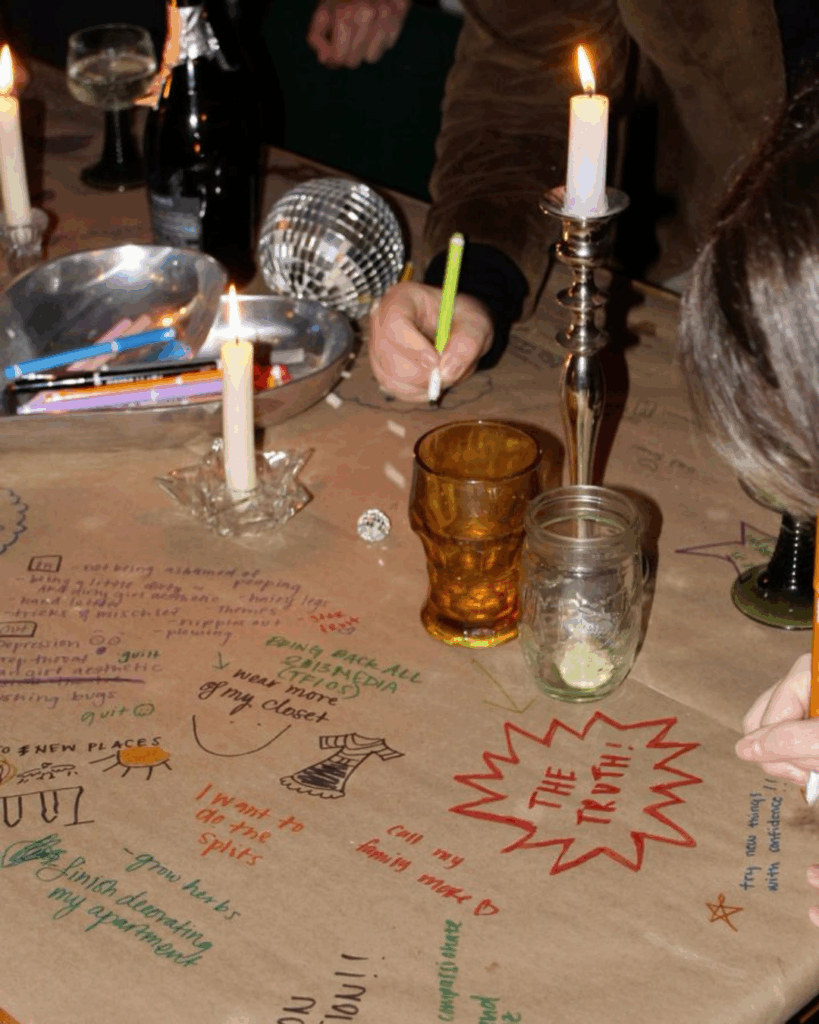 6. Un grand morceau de papier kraft et plein de feutres à disposition pour que chacun laisse une dédicace écrite sur la nappe !