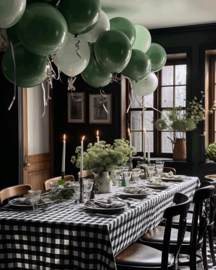 7. Le traditionnel ciel de ballons à laisser vivre au-dessus de la table, qui fait toujours sont bel effet.